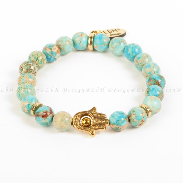 ÉGKÉK TENGERI ÜLEDÉK JASPIS - ARANY FATIMA KEZE