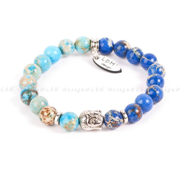 KÉK - ÉGKÉK TENGERI ÜLEDÉK JÁSPIS - BUDDHA EZÜST