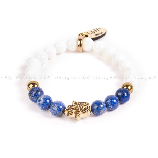 LAPIS LAZULI - ARANY HEMATIT - KAGYLÓ- FATIMA KEZE ARANY