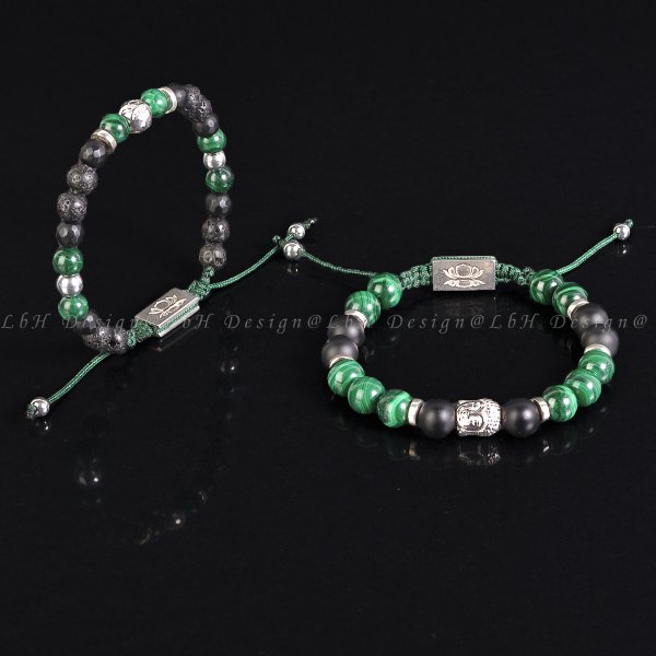 Malachit - Matt Ónix - Ezüst hematit - Lávakő - Fazettált Ónix - Buddha 925 szett
