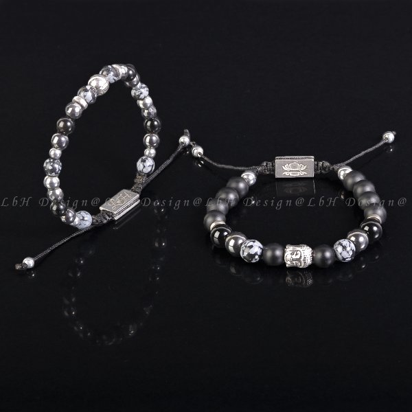 Matt Ónix - Hópehely Obszidián - Hematit - Ónix - Ezüst hematit - Buddha 925 szett