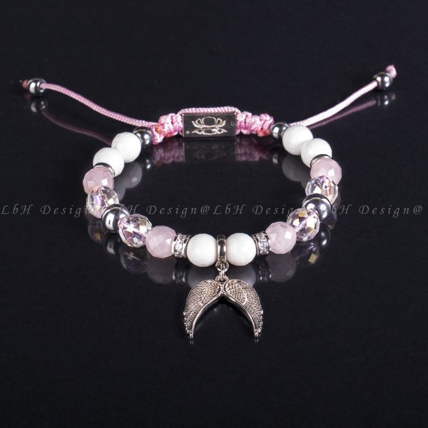 Pirivelege 925 Limitált Angyalszárny - Fazettált Rózsakvarc - Fazettált Kagyló - Fazettált Aqua Aura Kvrac – Ezüst Hematit