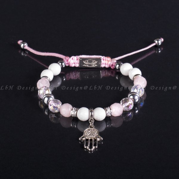 Pirivelege 925 Limitált Fatima keze - Fazettált Rózsakvarc - Fazettált Kagyló - Fazettált Aqua Aura Kvrac – Ezüst Hematit