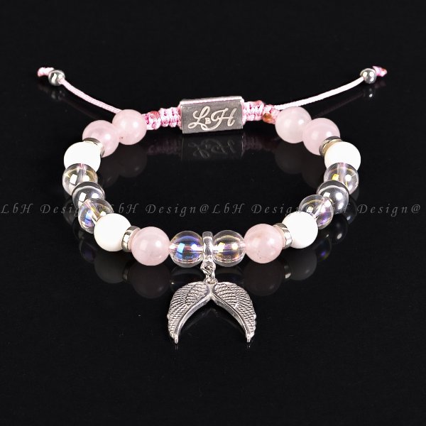 Rózsakvarc - Aqua Aura kvarc - Kagyló - Ezüst hematit - Angyalszárny 925