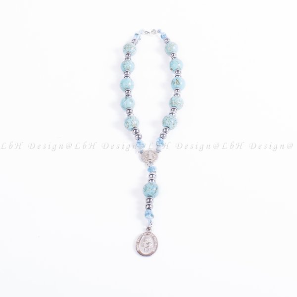 Féldrágakő Szent Kristóf rózsafüzér 925-ös ezüst kiegészítővel